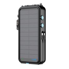 وجود ۵ پنل خورشیدی ۱۵۰×۶۰ میلیمتری باعث میشود که در فضای باز مانند کوهنوردی، کمپینگ یا سفر، بتوانید با استفاده از نور خورشید، پاوربانک را بهراحتی شارژ کنید. سیستم ورودی خورشیدی با توان ۸ وات (۵ ولت/۱.۶ آمپر) کارایی مناسبی را در شرایط نوری خوب فراهم میکند.