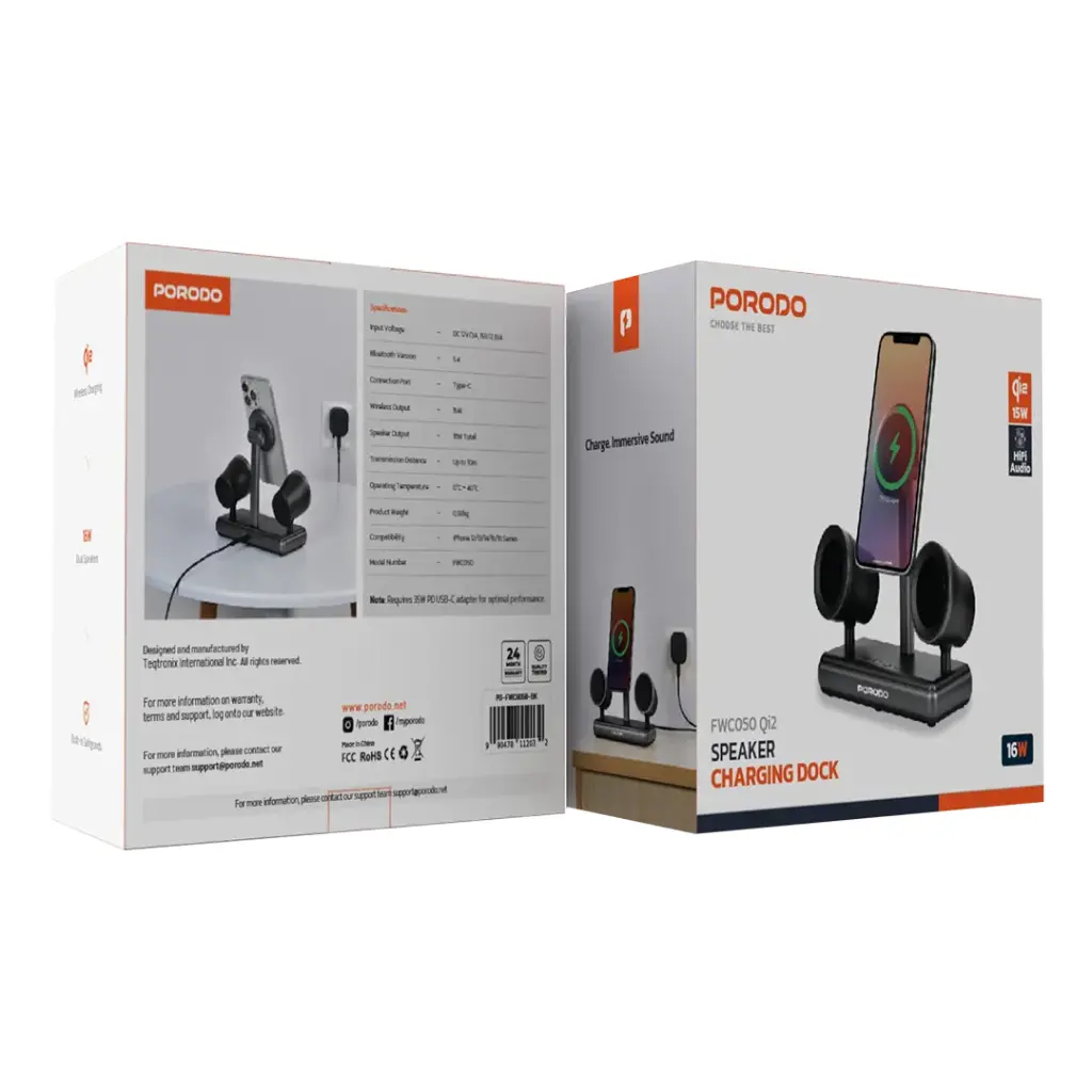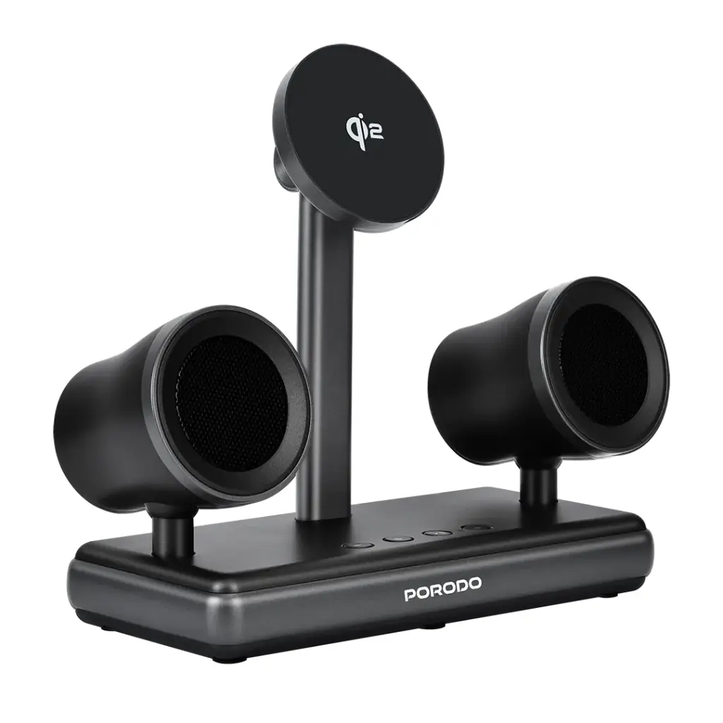 استند شارژر وایرلس و اسپیکر دار پرودو مدل Porodo Speaker Charging Dock PD-FWCH050-BK