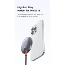 بدنه مقاوم و سبک از پلیکربنات، آلومینیوم و نایلون بافتهشده ساخته شده است. طراحی شفاف آن، سیمپیچ مسی و مدار داخلی را نشان میدهد و جلوهای صنعتی و مدرن ایجاد میکند. این شارژر با ۱۶ آهنربای N52، گوشی را بهطور دقیق و پایدار روی سطح نگه میدارد و حتی قابهای تا ۳ میلیمتر را پشتیبانی میکند.