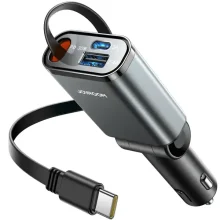 شارژر فندکی جویروم فست شارژ ماشین Type-C و USB 30 وات با کابل جمعشونده (Joyroom JR-CCL07)