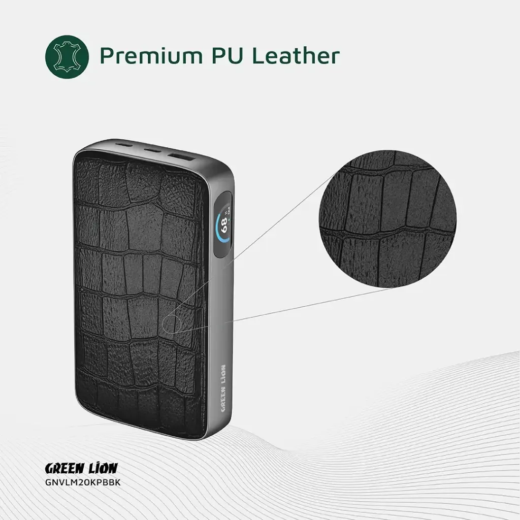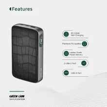پاوربانک Green Lion Valmont 20000mAh PD 100W یک پاوربانک فوقپیشرفته و لوکس است که با طراحی شیک، بدنه مقاوم و شارژ فوق سریع، تجربهای حرفهای برای کاربران ایجاد میکند. ترکیب ABS + PC + چرم PU در بدنه، مقاومت بالا و ظاهر لوکس را به محصول بخشیده و آن را برای استفاده در محیطهای کاری و سفرهای حرفهای ایدهآل میکند.