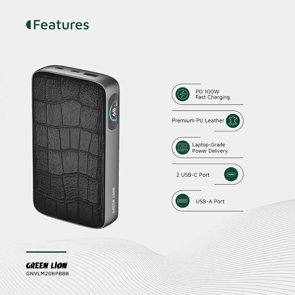 اگر به دنبال پاوربانکی با توان بالا، پورتهای متنوع، شارژ سریع PD 100W و طراحی لوکس هستید، Green Lion Valmont 20000mAh Power Bank بهترین گزینه برای کاربران حرفهای، سفرهای کاری و محیطهای لوکس است.