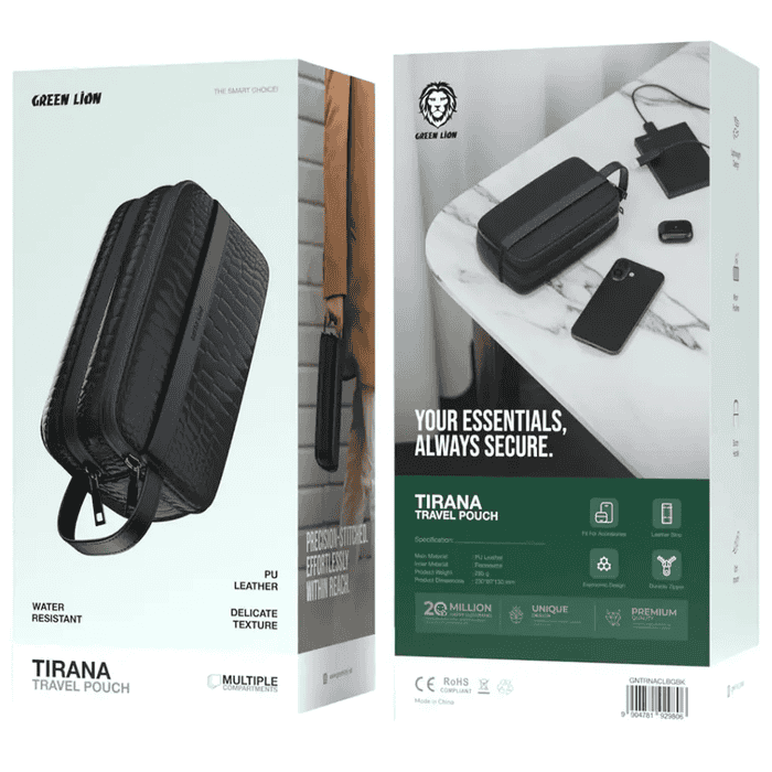 کیف Green Lion Tirana Travel Pouch با طراحی سبک، مقاوم و چند محفظه داخلی، انتخابی عالی برای کسانیست که به نظم و محافظت از لوازم ضروری خود در سفر اهمیت میدهند. این کیف همراهی مطمئن برای سفرهای کوتاه و بلند خواهد بود.