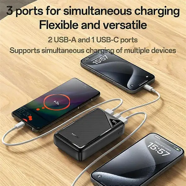 پاوربانک Yesido YP81 یک شارژر همراه قدرتمند با ظرفیت 20000 میلیآمپر ساعت است که با توان خروجی 2.4 آمپر، شارژ سریع و پایدار دستگاههای مختلف را فراهم میکند. این مدل دارای نمایشگر دیجیتال LED برای نمایش میزان شارژ باقیمانده و سه پورت خروجی (دو USB‑A و یک USB‑C) بوده و برای استفاده روزمره و سفر طراحی شده است.