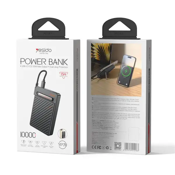 پاوربانک Yesido YP77 یک شارژر همراه فوقالعاده قدرتمند با ظرفیت 50000 میلیآمپر ساعت است که برای کاربرانی با مصرف بالا طراحی شده. این مدل علاوه بر شارژ سیمی، قابلیت شارژ بیسیم مغناطیسی را نیز ارائه میدهد و با نمایشگر دیجیتال، چندین پورت خروجی و طراحی مقاوم، یک گزینه کامل برای سفرهای طولانی و استفاده حرفهای محسوب میشود.